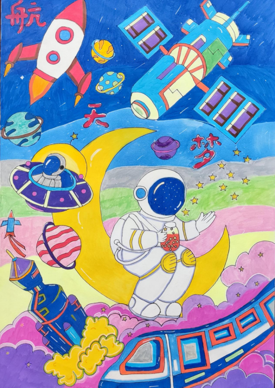 图为来自陕西的李梦洁创作的绘画作品《航天梦》。