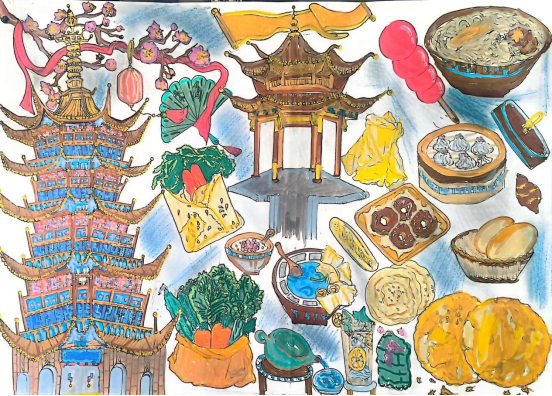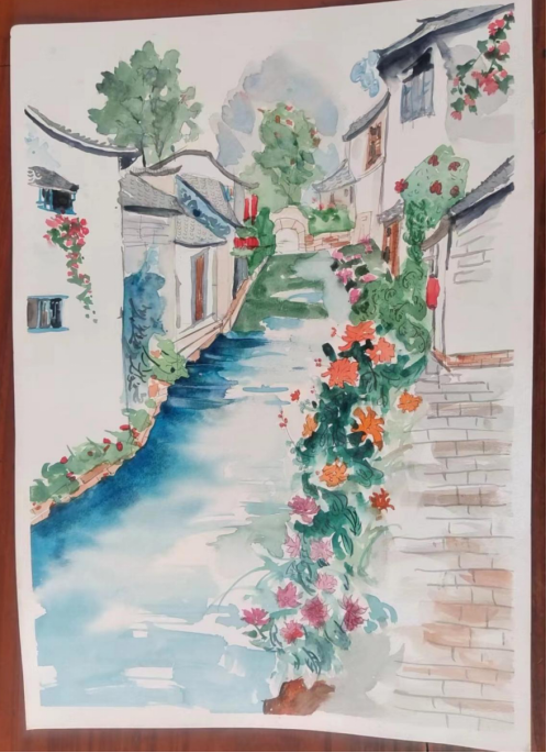 图为来自安徽的焦文欣创作的绘画作品《我的家乡》。