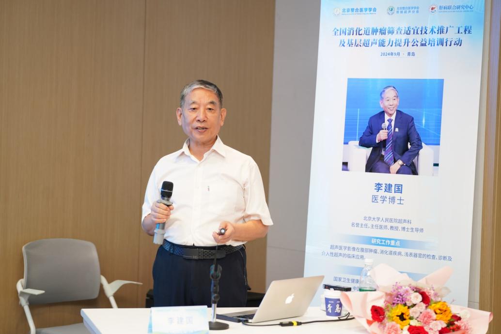 活动期间,中国超声医学工程学会、北京整合医学学会胃肠超声分会名誉会长,北京大学人民医院超声科李建国教授指导基层医生进行了腹部及胃超声的实际操作,还在讲座中详细阐述了“腹部超声在消化系统诊断中的意义”。李建国强调了胃肠超声技术发展在基层医疗机构中的重要性和紧迫性,其次,李建国强调了规范化超声操作的重要性,并提出了一系列具体建议,希望能够帮助基层医务人员提升超声诊断能力,进一步提高肿瘤的早期发现率。他还特别关注肝脾弥漫性病变的超声诊断与临床治疗的结合,尤其是与中医药诊疗的协同作用,认为这是未来研究和实践的一个重要方向。他重申了消化道肿瘤筛查的重要性,并呼吁建立涵盖胃肠、肝脾及胰胆的整体消化道超声检查体系,以更加全面、系统地应对消化道癌症的挑战,把握治疗时机,提高患者生存率。
