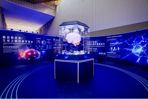 在浦东图书馆,“穿越百年的科技之旅”医学科普展以“源点觉醒”“生命引擎”“明日视界”三大主题篇章为核心,串联起了人类医学科技在过去一个世纪中的重大突破与未来展望。从大脑的奥秘到心脏的动力,从人工智能的崛起到医疗机器人的精准操作,每一篇章都如同一扇窗,让参观者近距离感受医学科技的魅力与温度。这一医学科普阅读空间内部,设有趣味医学艺术装置吸引市民驻足参观,以“缸中之脑”“心电脉动”“外科手术武器库”为视觉锚点,分别向观众展示了关于人类大脑、心脏的基础知识、疾病科普、科学家故事以及人类外科手术未来发展趋势等内容。