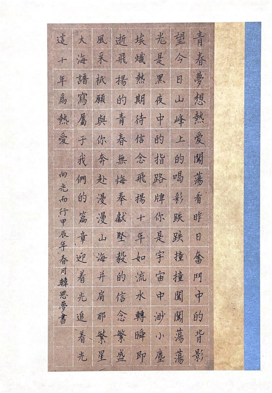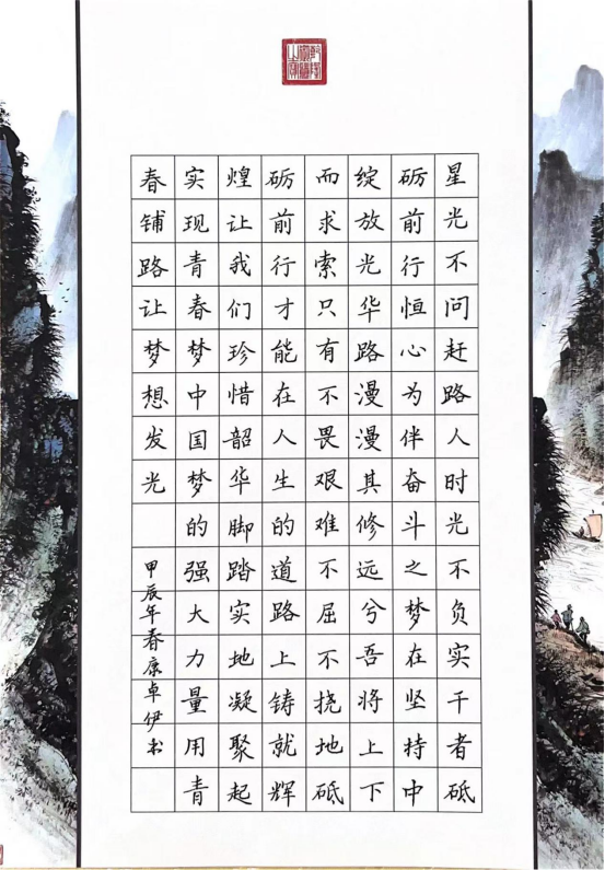 图为来自河北的康卓伊创作的书法作品《逐梦青春》。