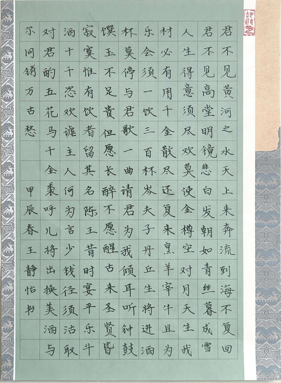 图为来自甘肃的王静怡创作的书法作品《将进酒》。