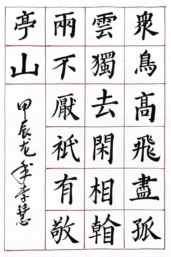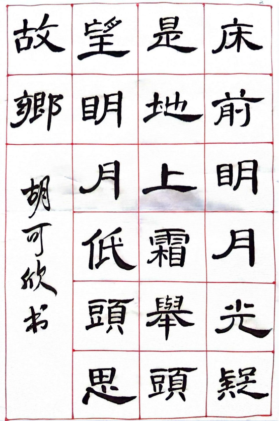 图为来自甘肃的胡可欣创作的书法作品《静夜思》。