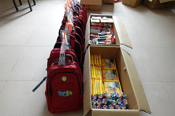 图为中国儿童少年基金会配备的爱心礼物。新华网吴咏玲 7月26日摄