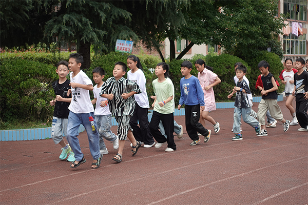 7月28日,贵州省纳雍县维新镇第二小学的孩子们在操场上跑步。新华网吴咏玲 摄