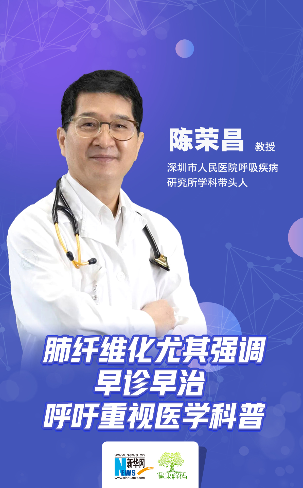 陈荣昌:最常见的误区的是症状不明显,但是已经有纤维化的时候,患者没有引起足够重视,觉得没什么。早期的肺纤维化,应该及早地找专业医生根据不同病因来进行诊疗,让疾病停留在症状还不是太重的状态,这对患者生活质量有重要意义。
