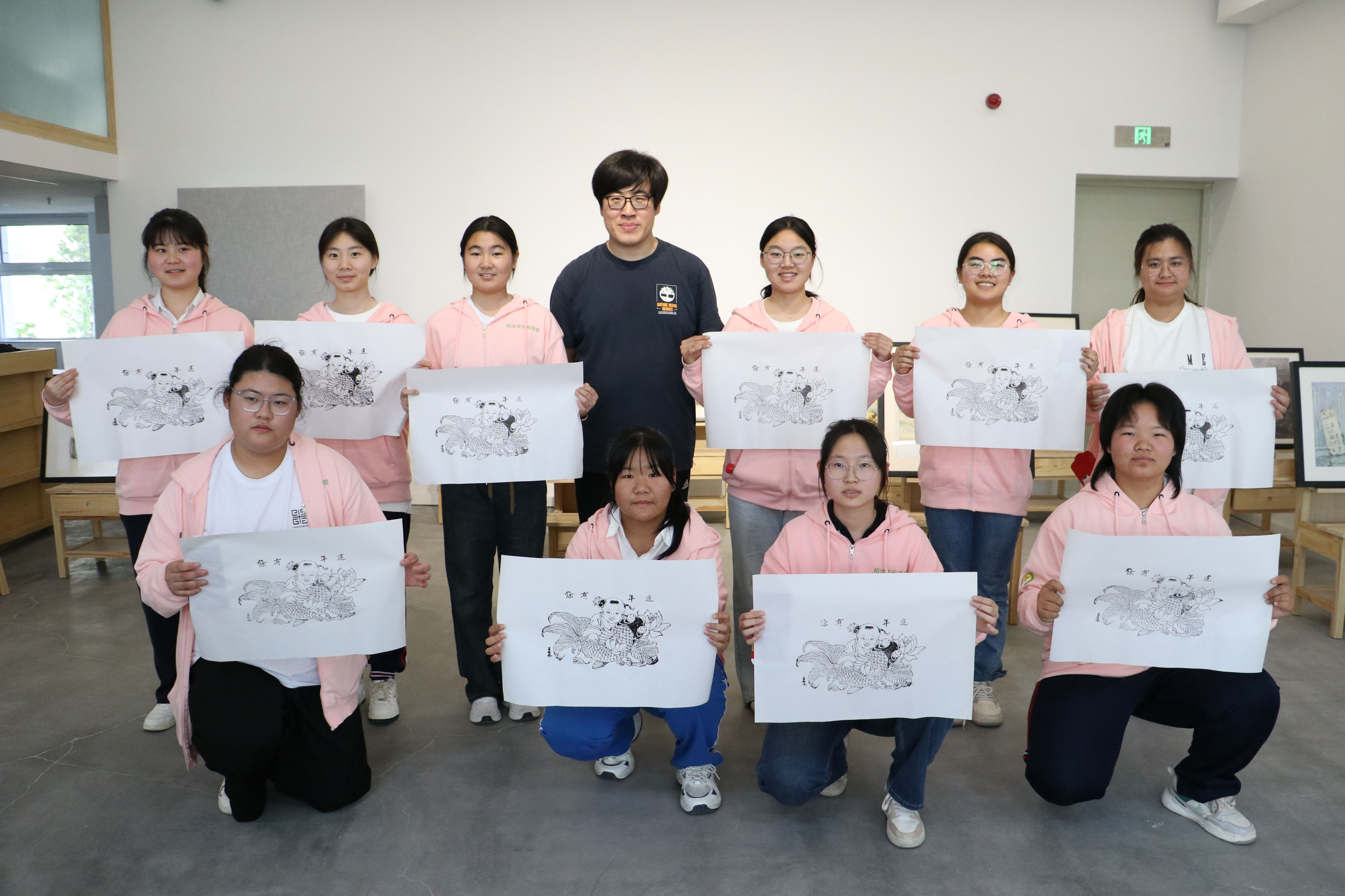 下午的活动充满了传统文化气息。在杨柳青木版年画工作室,木版年画传承人杨鹏以“美在民间 与美同行”为题,向同学们介绍了杨柳青木版年画的历史、特点以及题材类型,讲解了杨柳青木版年画勾、刻、印、绘等制作过程。