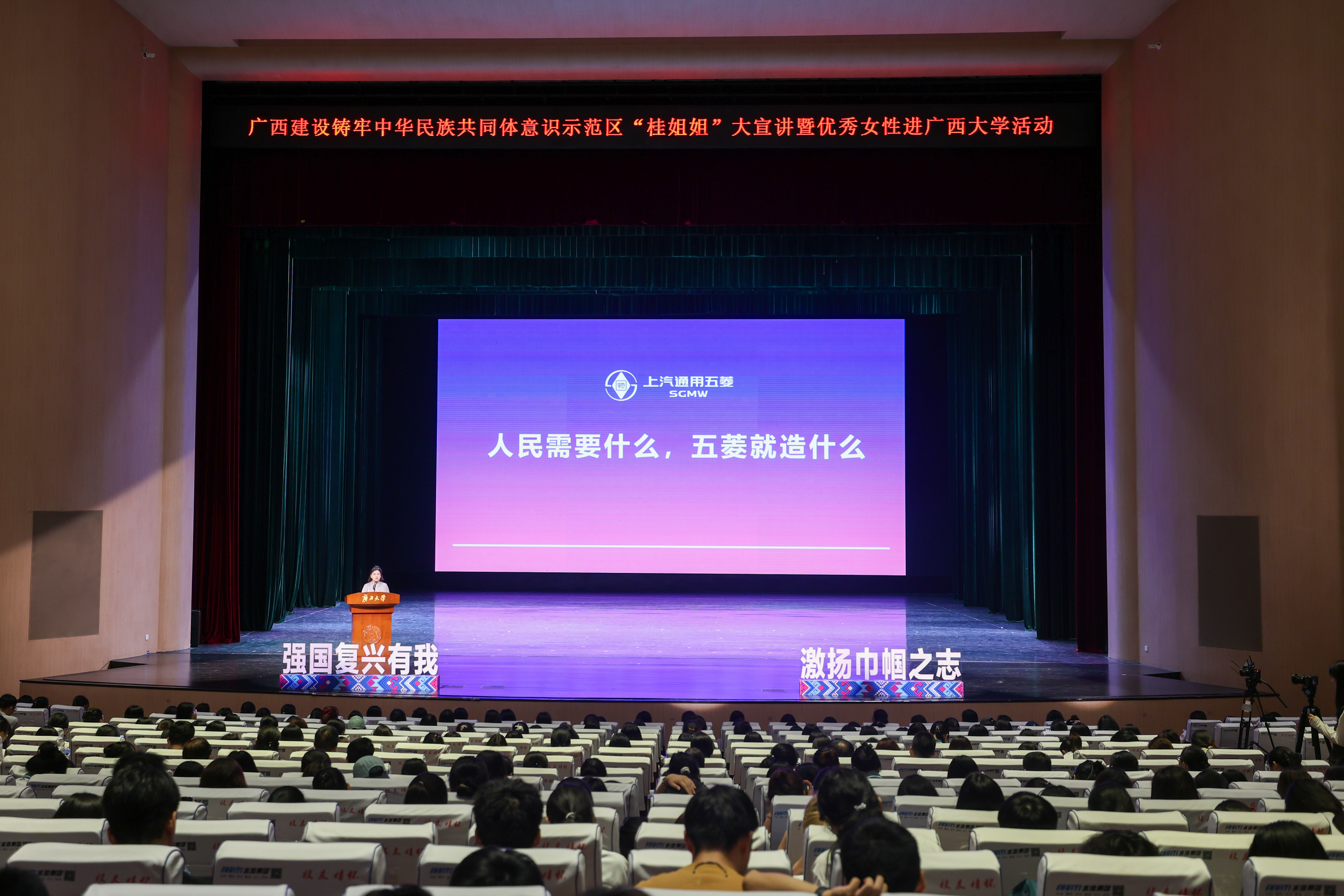 当天,还举办了2025年广西建设铸牢中华民族共同体意识示范区“桂姐姐”大宣讲暨优秀女性进高校活动,全国三八红旗手荣誉称号获得者谢冰梅、魏敏等多位在助推科技发展、乡村振兴等方面作出突出贡献的优秀女性分享自身成长成才、干事创业的故事,以她们的亲身经历为春蕾女童提供前进的动力和追梦的指引。