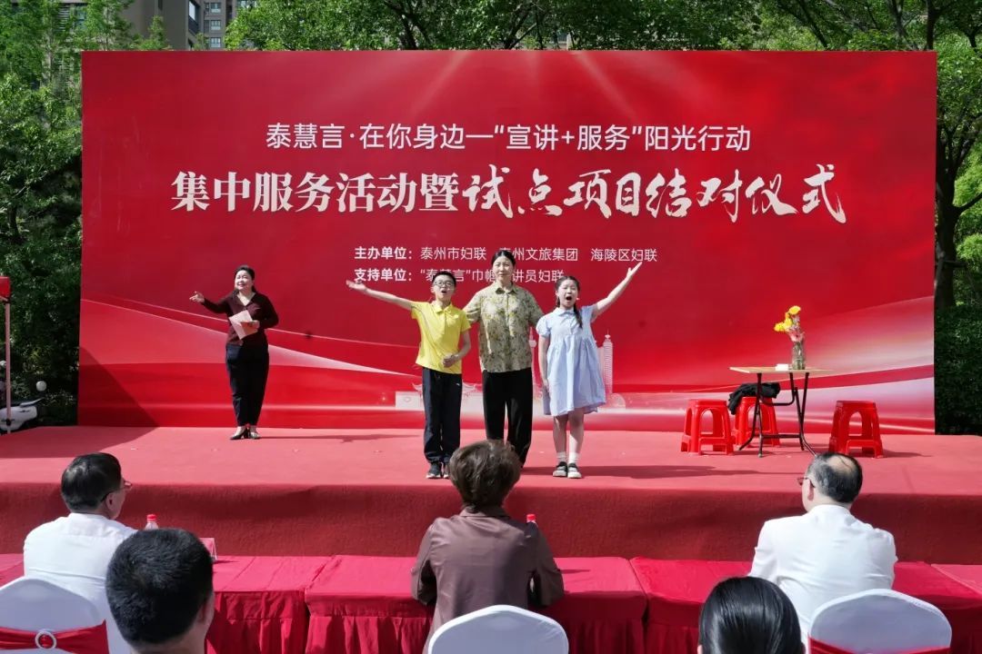 泰州市妇联聚焦妇女群众最关心、最直接、最现实的“急难愁盼”问题,整合各方力量资源,策划实施“微光映朝夕”“润安法立方”“‘杏林巾帼 医心卫民’公益行”等一批巾帼志愿阳光行动试点项目,将党的创新理论、政策解读融入技能培训、亲子互动、维权服务等具体场景,实现“台上讲理论”与“台下办实事”同频共振。