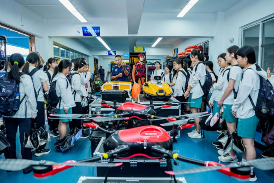 7月10日,参加“春蕾茁壮公益计划”研学营的春蕾女孩们在厦门市蓝天救援队参观。