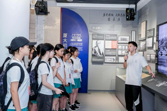 7月9日,参加“春蕾茁壮公益计划”研学营的春蕾女孩们参观厦门大学校史馆。