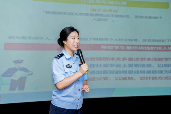 7月10日,厦门市公安局社区女民警为参加“春蕾茁壮公益计划”研学营的春蕾女孩们进行安全教育讲座。