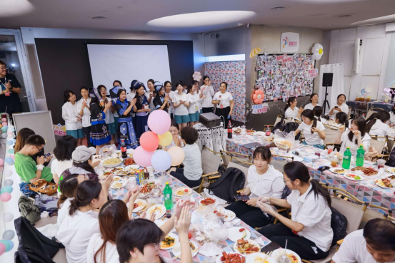 7月10日,参加“春蕾茁壮公益计划”研学营的春蕾女孩们在结营仪式上合影留念。