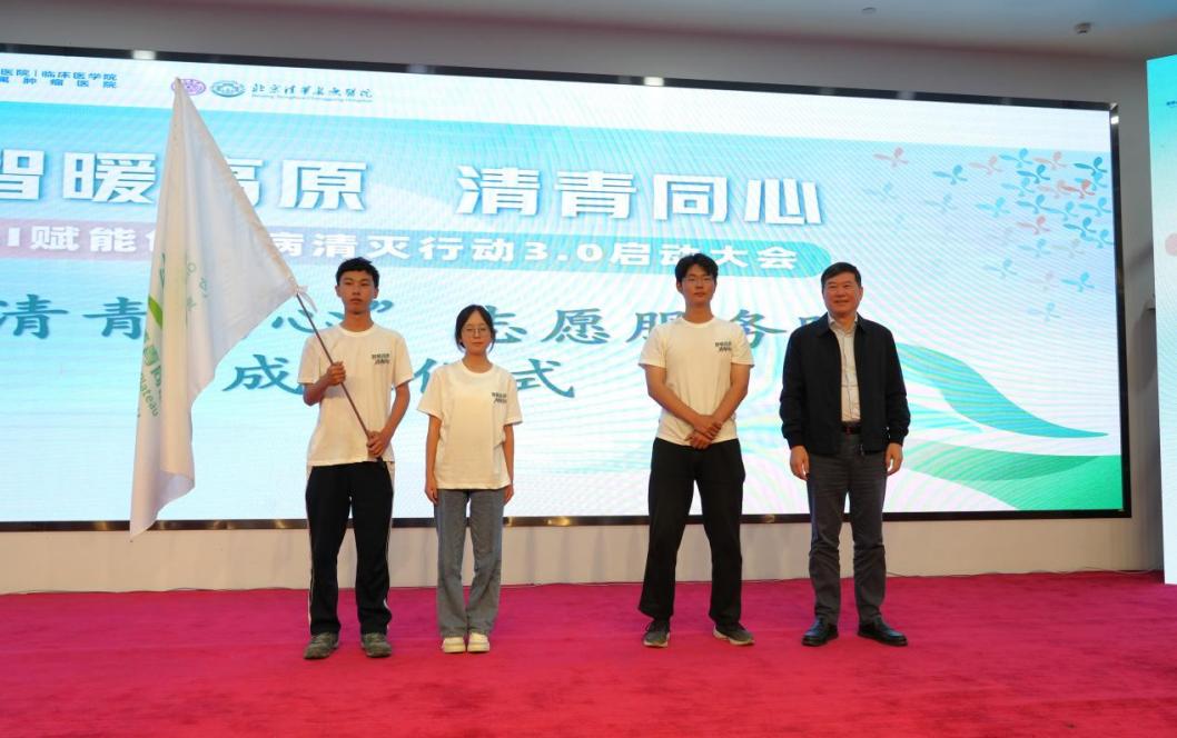 图为“清青同心”包虫病志愿服务队成立,由北京清华长庚医院社会服务部统筹管理,召集包虫病患者(康复者)及社会公众组成,在当地开展公益服务