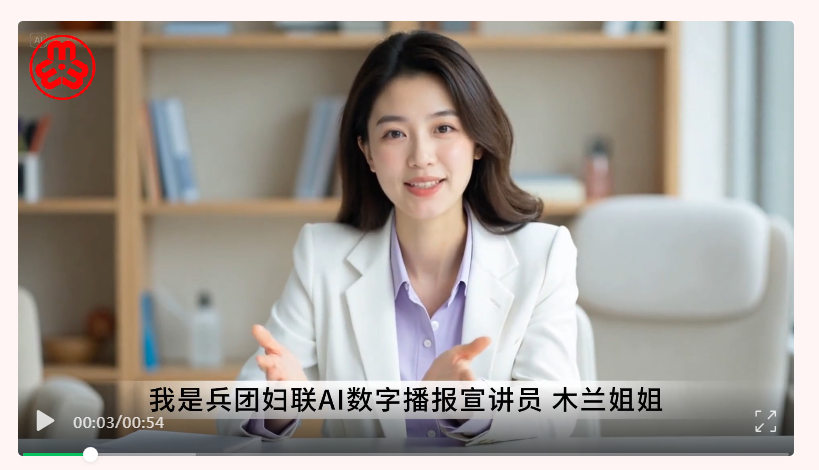兵团妇联积极构建“线上+线下”宣讲新矩阵,积极运用新媒体和人工智能技术提升宣传效能,组织网络及新媒体专题培训,提升各级妇联及“三新”领域宣传骨干业务能力;持续做强“兵纷女声”微信公众号、视频号,在微信公众号开设“木兰·巾帼大宣讲”“木兰·巾帼大学习”专栏,广泛推广《联联送服务》生活小百科AI短视频,积极把握人工智能发展机遇,探索AI赋能宣传的有效途径,创新推出兵团妇联AI数字播报宣讲员“木兰姐姐”,定期推送理论政策、科普知识,让妇女群众随时随地可学可感,打破时空限制。五师妇联开展“她力量·家故事”系列直播宣讲6场,累计观看超3000人次;八师妇联打造“木兰·巾帼大学习”线上课堂,推出“习近平走进百姓家”有声书、“今天我来读”云接力等70余期专栏,使理论学习触手可及、深入人心。