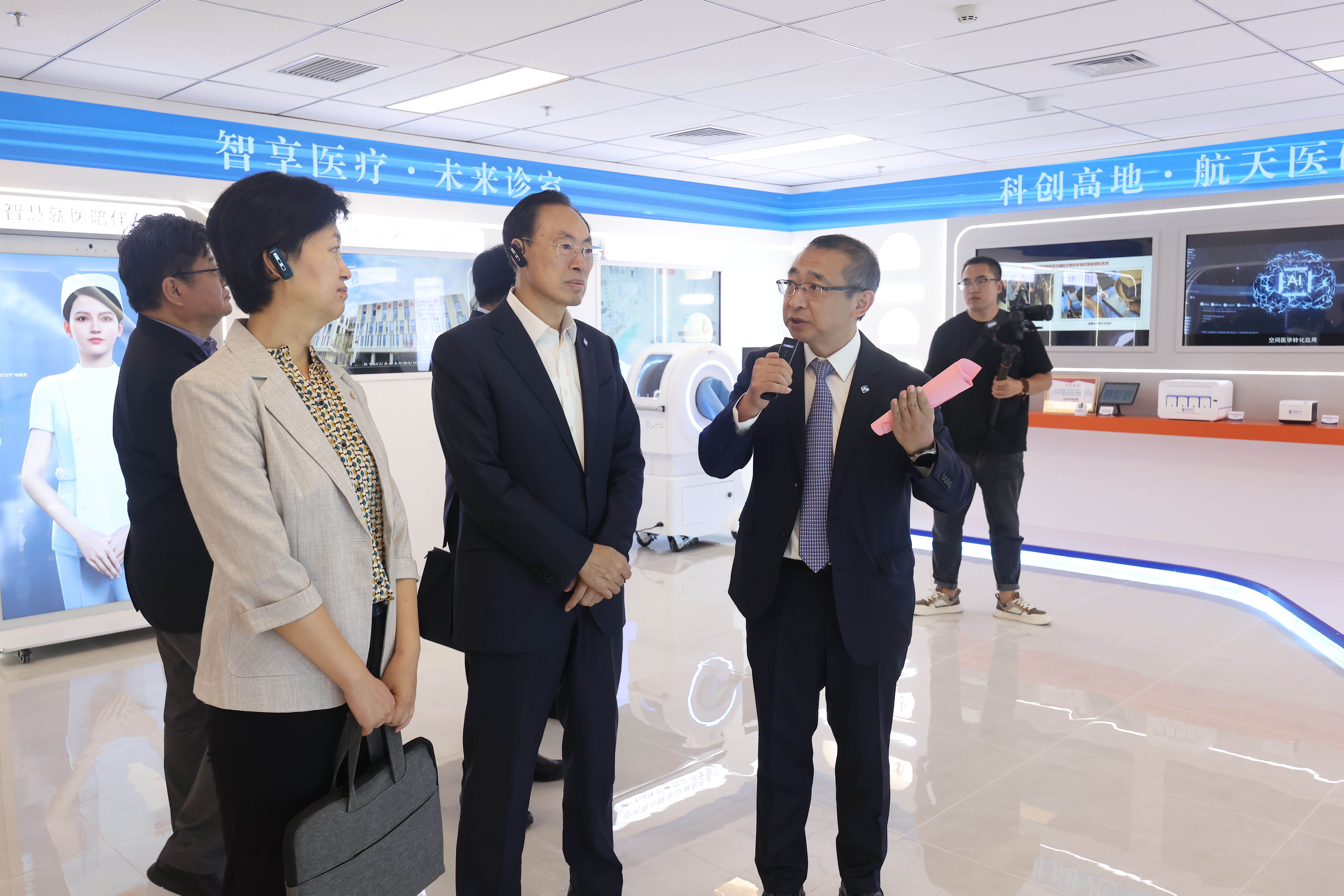 与会嘉宾实地参观了苏家坨院区智慧医疗体验区、急诊科、神经内科、机器人展厅等区域。宽敞舒适的就诊环境、科学合理的功能布局、先进完备的诊疗设施,智慧诊疗及智能机器人的创新布局和应用成果,获得了广泛肯定。