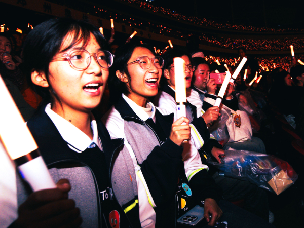 这是一场音乐洗礼。每首歌都像一把钥匙,打开孩子们藏在心里的情绪。唱到《任性》里“所有风雨都会是人生风景”时,有孩子若有所思地跟着念歌词;当《倔强》的前奏刚响,孩子们则跟着歌迷一起喊出“我和我最后的倔强,握紧双手绝对不放”给自己打气。