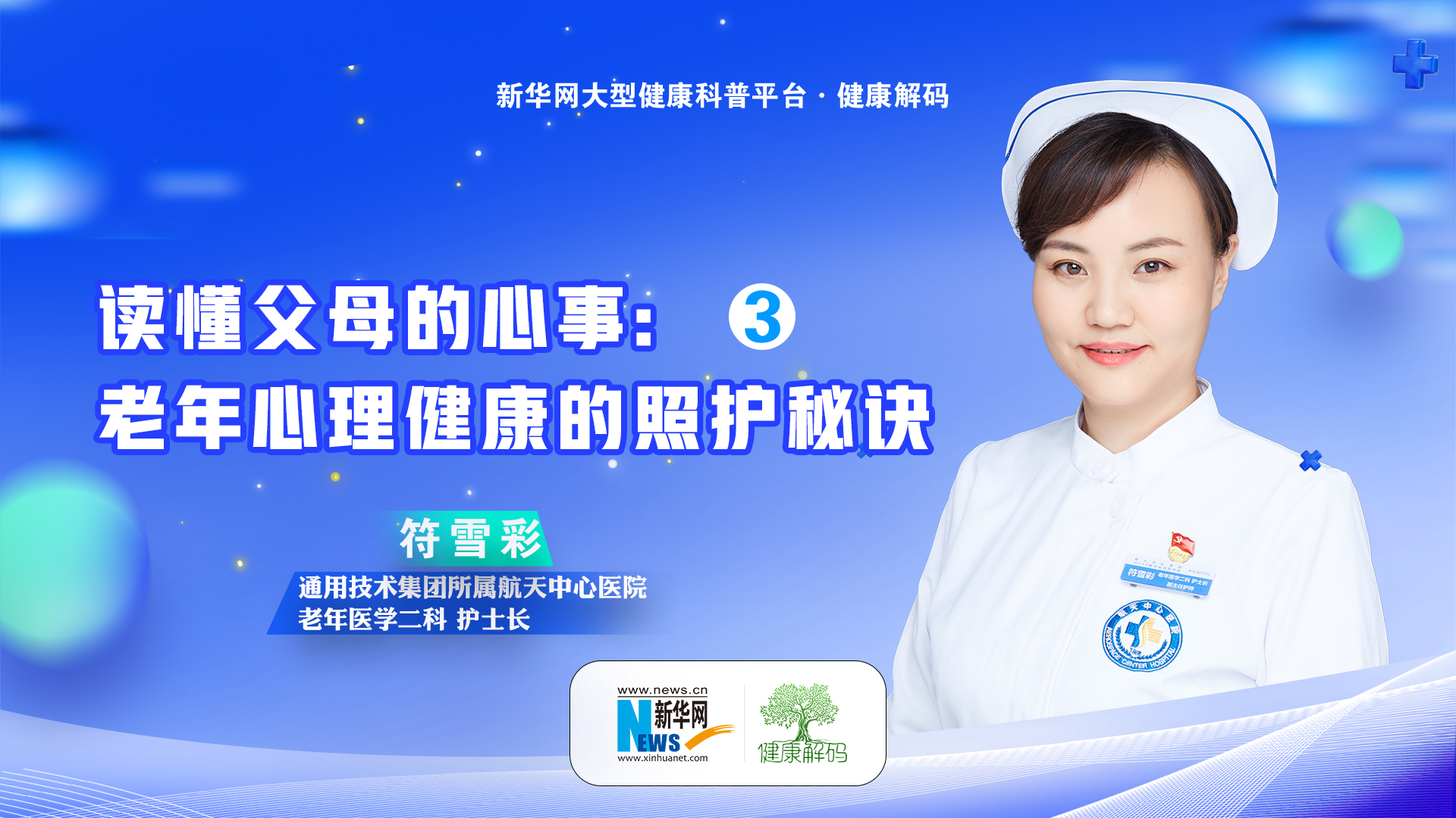 "本集我们邀请了通用技术集团所属航天中心医院老年医学二科护士长、主任护师符雪彩分享《读懂父母的心事——老年心理健康的照护秘诀》。"