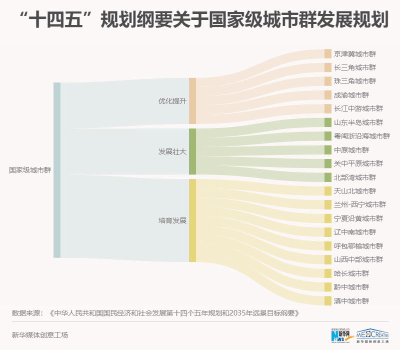 站在“两个一百年”奋斗目标的历史交汇期,城市迎来新的使命。“十四五”规划纲要通过了19个国家级城市群的发展规划,我国的城镇化建设有望展现出崭新的发展格局。