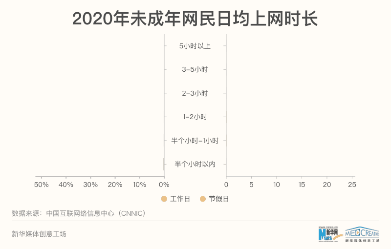 数据显示,未成年网民互联网使用时长不断增加,2020年未成年网民在工作日平均每天上网时长在2小时以上的为11.5%,节假日平均上网时长在5小时以上的为12.2%。