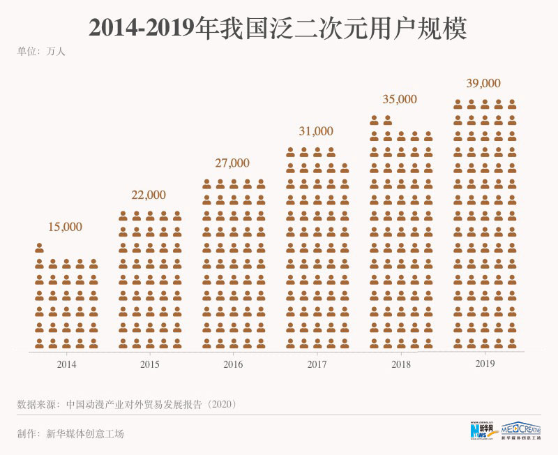 随着动画文化不断突破圈层,我国泛二次元用户规模呈上升趋势。2019年,我国泛二次元用户规模已达3.9亿人,95后、00后成为动漫的核心观看人群,用户为动漫付费意愿强。