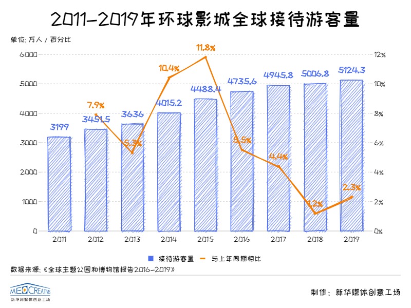 近年来,环球影城全球游客接待量逐年提升。AECOM联合TEA发布《2019全球主题公园和博物馆报告》显示,环球影城2019年全球接待游客量5124.3万人次,相比2018年增长2.3%,总规模居世界第四。