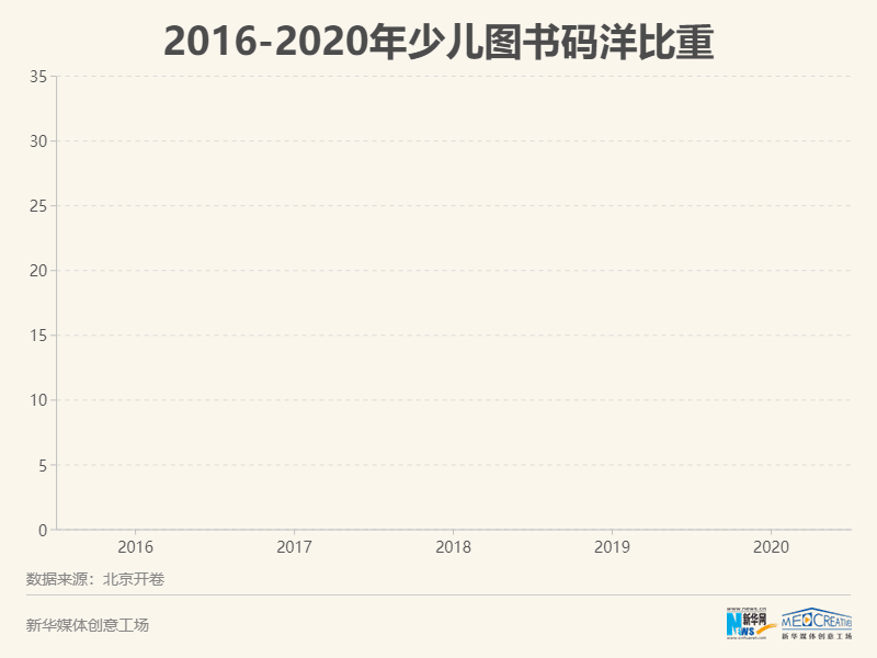 “码洋”是图书出版发行部门用于指全部图书定价总额的词语,可以反映图书市场的规模。据北京开卷提供的数据,从2000年到2019年,少儿图书市场的码洋比重一路攀升,中国童书零售市场规模逐渐扩大。2020年,受疫情影响,全国图书零售市场规模首次出现-5.08%的负增长,而少儿图书码洋比重依然保持着1.96%的小幅增长。