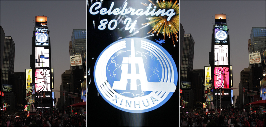 纽约时报广场大屏幕庆祝新华社建社80周年
