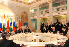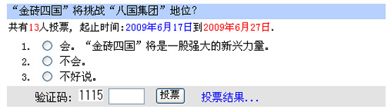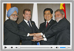 | 中国外交部国际司司长吴海龙15日在吹风会上表示,中方认为“金砖四国”的合作应该循序渐进,重点是要“开好头、起好步”,以推动四国合作向更加务实、互利共赢的方向发展。此次会晤将在应对金融危机、推进世界贸易组织多哈回合谈判以及抵制保护主义方面发挥重要的作用。 [详细] | | 美国高盛公司2001年预测,到2050年,世界经济的主导者将不仅有现在的美国、欧洲和日本,还将有来自发展中世界的四个国家,它们分别是巴西、俄罗斯、印度和中国。“金砖四国”的说法不胫而走。根据高盛预测,到本世纪中期,中国将成为世界上最大的经济体,印度将与美国不相上下。 [详细] | | "金砖四国"是国际政治当中的新现象,但是不能把它看成是封闭的集团。现在世界经济格局发生了明显变化,各国都要与时俱进,改变思维。"金砖四国"本着非常现实可行的、实事求是的态度,西方没有必要有防范的心理,应该承认"金砖四国"是一个新兴的力量,同他们展开对话。 [详细] |