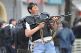 示威者投掷石块