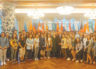 5月22日是上海合作组织秘书处开放日,50余名中外学生参观秘书处。资料图片