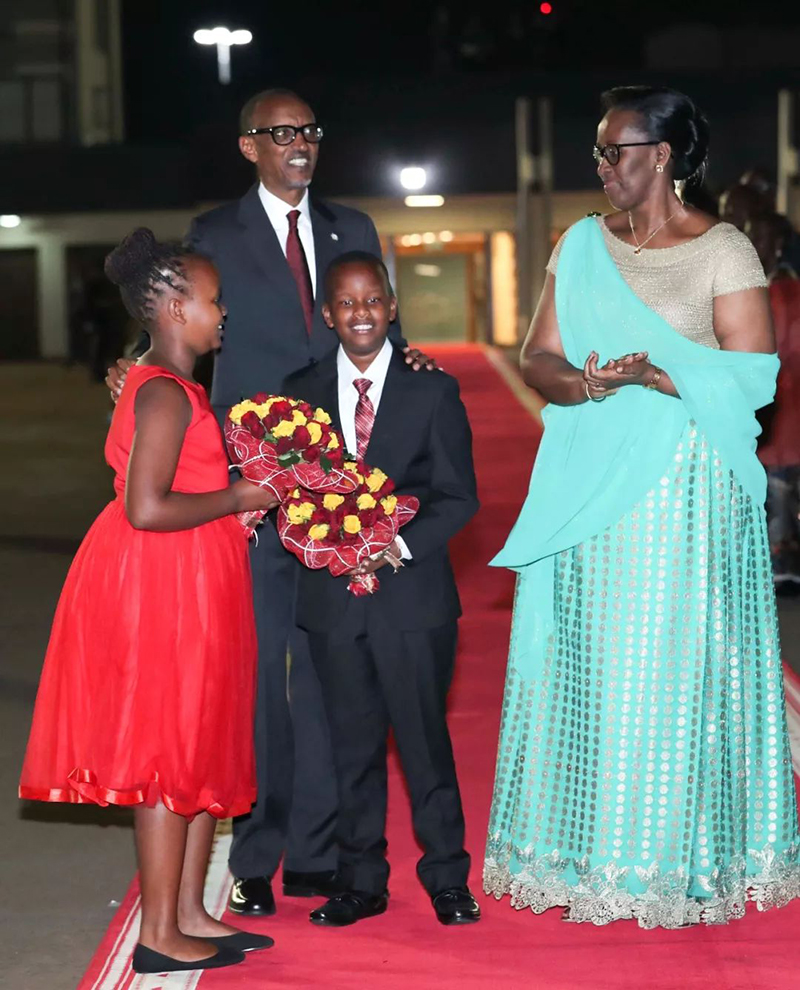 夜空之下,基加利国际机场。山光点点,笑脸盈盈,乐鼓咚咚。卡加梅总统夫妇在这里为习近平主席和夫人彭丽媛举行隆重的欢迎仪式。