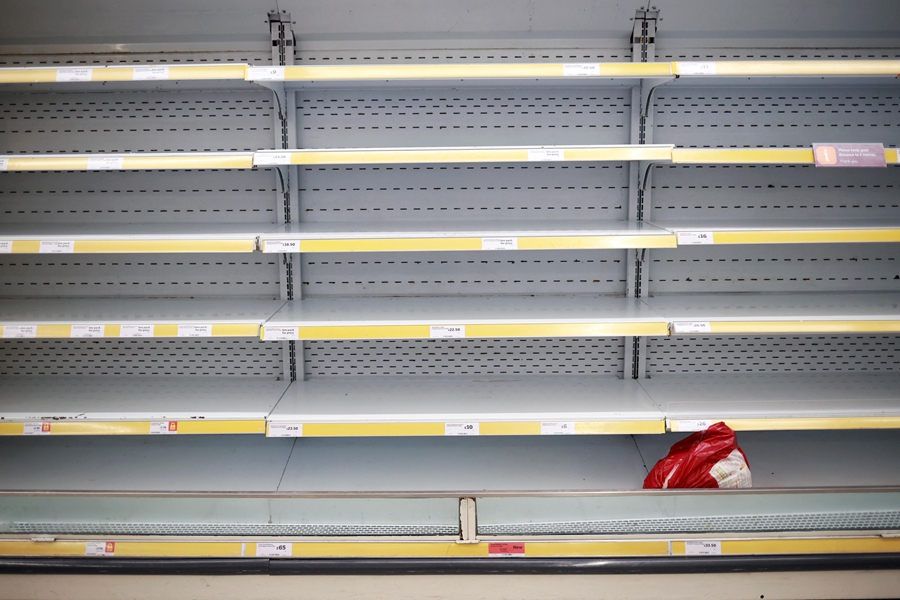 这是12月21日在英国伦敦一家商店拍摄的货架上最后一袋火鸡。(新华社/路透)