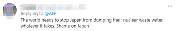 “世界需要不惜一切代价阻止日本排放核废水。日本无耻。”