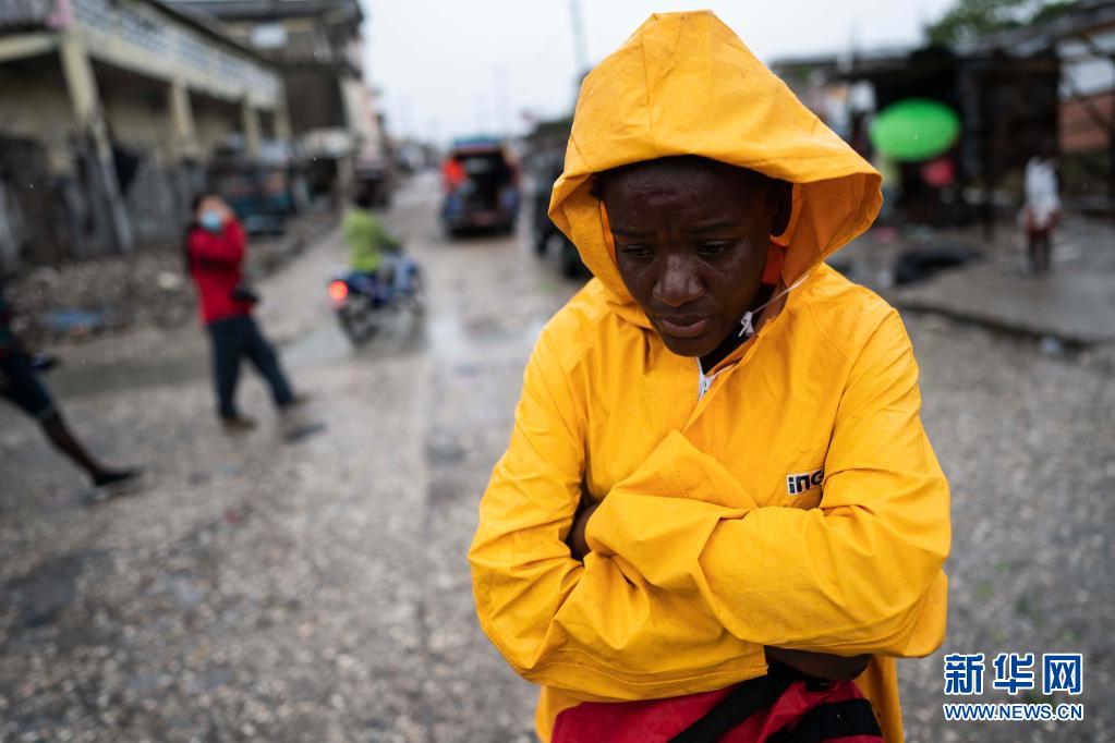 8月17日,一名居民站在海地莱凯的街道上。