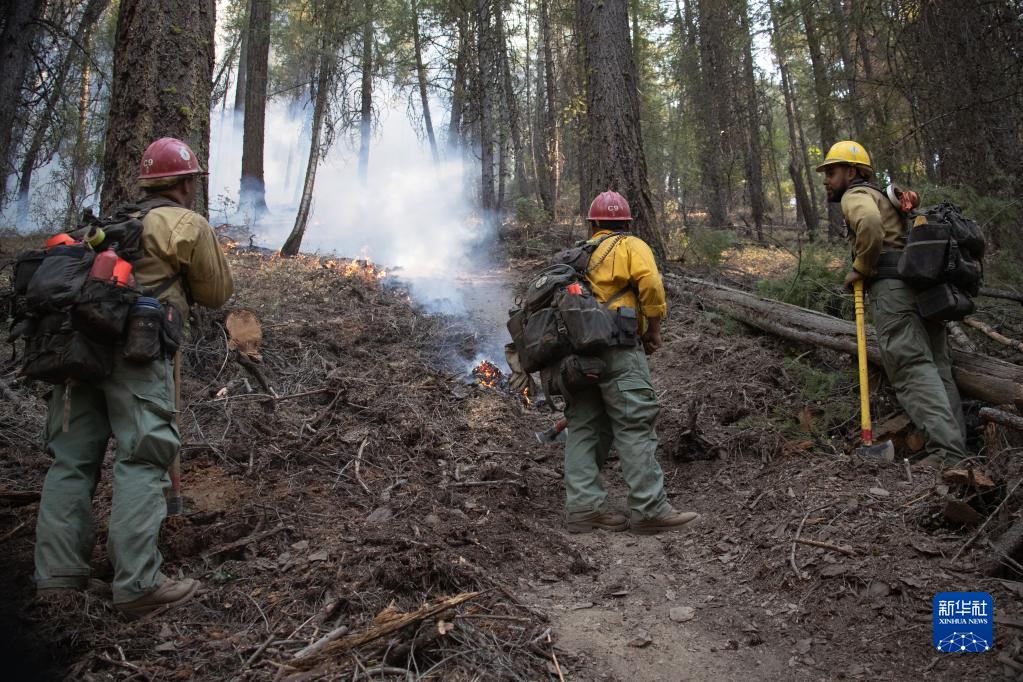 8月19日,消防员在美国加利福尼亚州北部格林维尔附近的一处“迪克西”山火火场灭火。