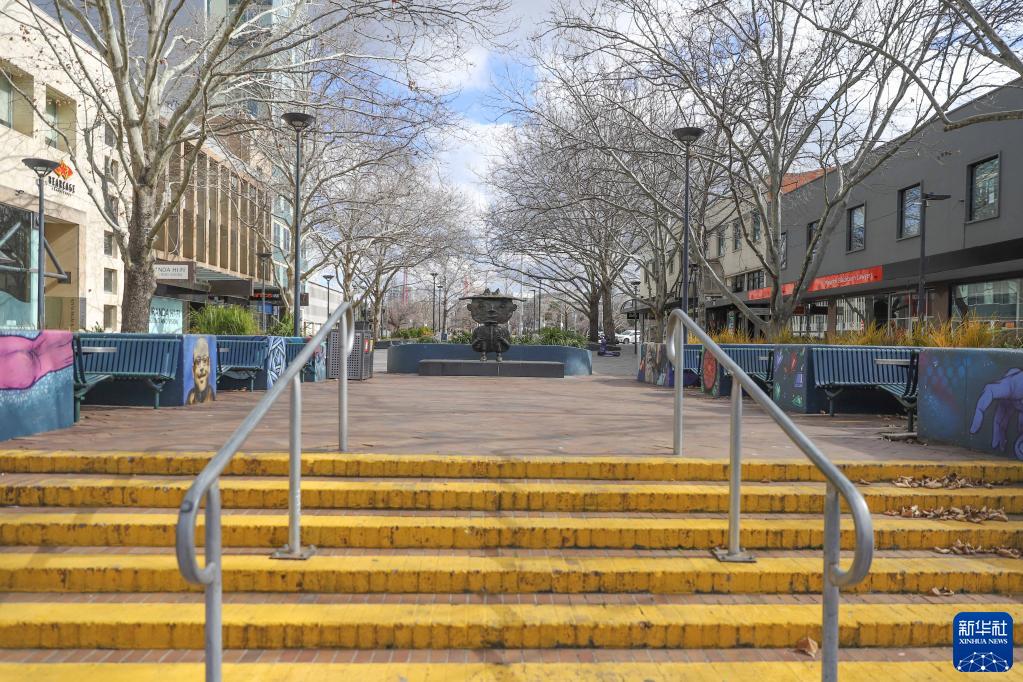这是8月21日在澳大利亚堪培拉拍摄的市中心商业区空荡荡的步行街。