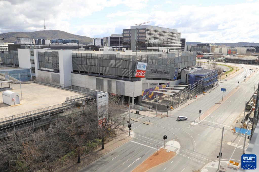 这是8月21日在澳大利亚堪培拉拍摄的空荡荡的街道。