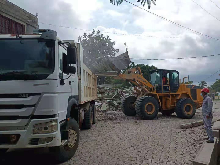 在清理完废墟后,公司员工还帮助当地政府疏通了通往南部省首府莱凯的道路。