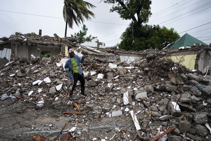8月17日,一名男子清理海地莱凯的一处房屋废墟。新华社发(戴维·德拉帕斯摄)