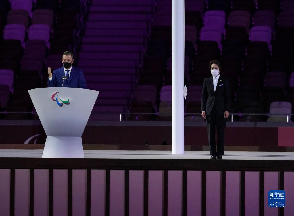 这是国际残奥委会主席安德鲁·帕森斯(左)在开幕式上讲话。