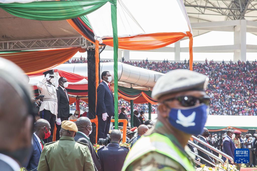 赞比亚当选总统哈凯恩德·希奇莱马24日在首都卢萨卡宣誓就职,任期5年。新华社发(马丁·姆班圭塔摄)