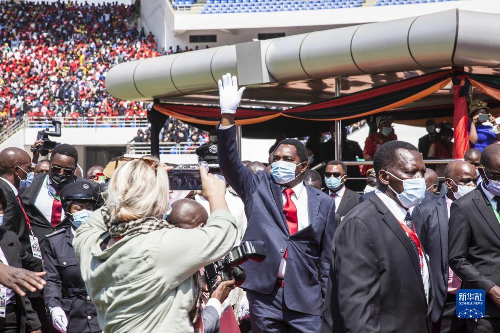 赞比亚当选总统哈凯恩德·希奇莱马24日在首都卢萨卡宣誓就职,任期5年。新华社发(马丁·姆班圭塔摄)