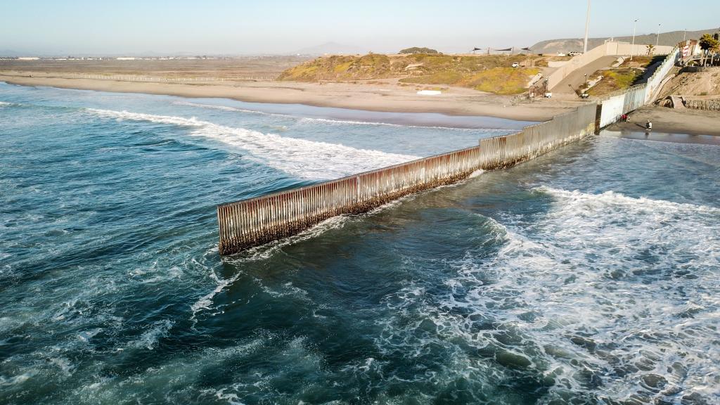 2019年1月10日,在墨西哥边境城市蒂华纳拍摄的美墨边境墙。(新华社记者辛悦卫摄)