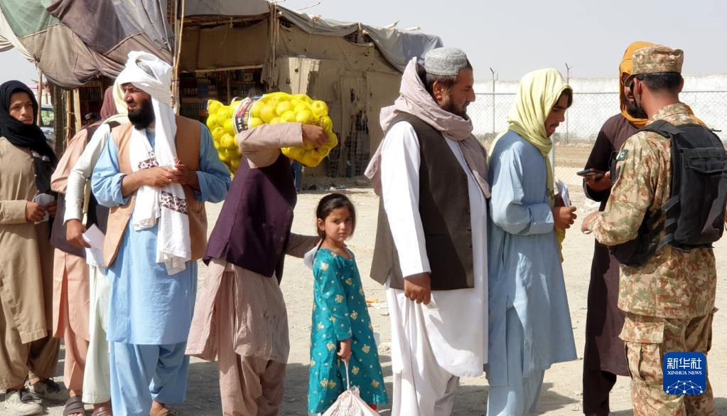 8月27日,在巴基斯坦与阿富汗的边境口岸杰曼,巴基斯坦士兵查看回国的阿富汗人的证件。