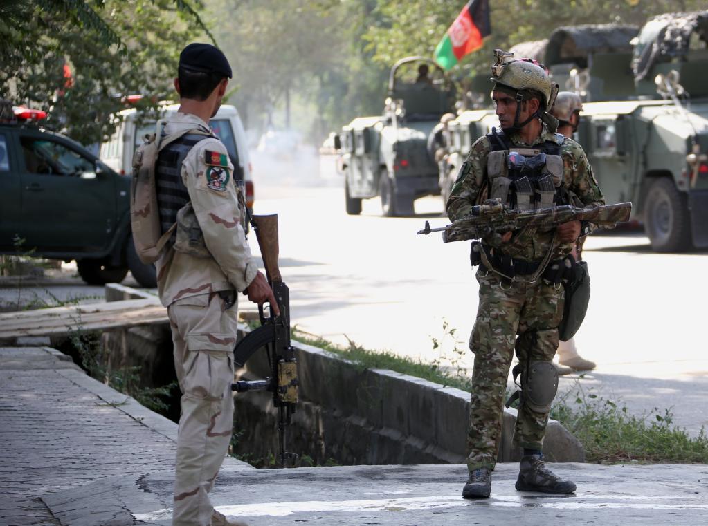 2017年8月25日,不明身份武装人员袭击阿富汗首都喀布尔一座清真寺,导致重大人员伤亡。极端组织“伊斯兰国”宣称实施此次袭击。图为安全人员在遭袭现场警戒。(新华社发,拉赫马特·阿里扎达摄)