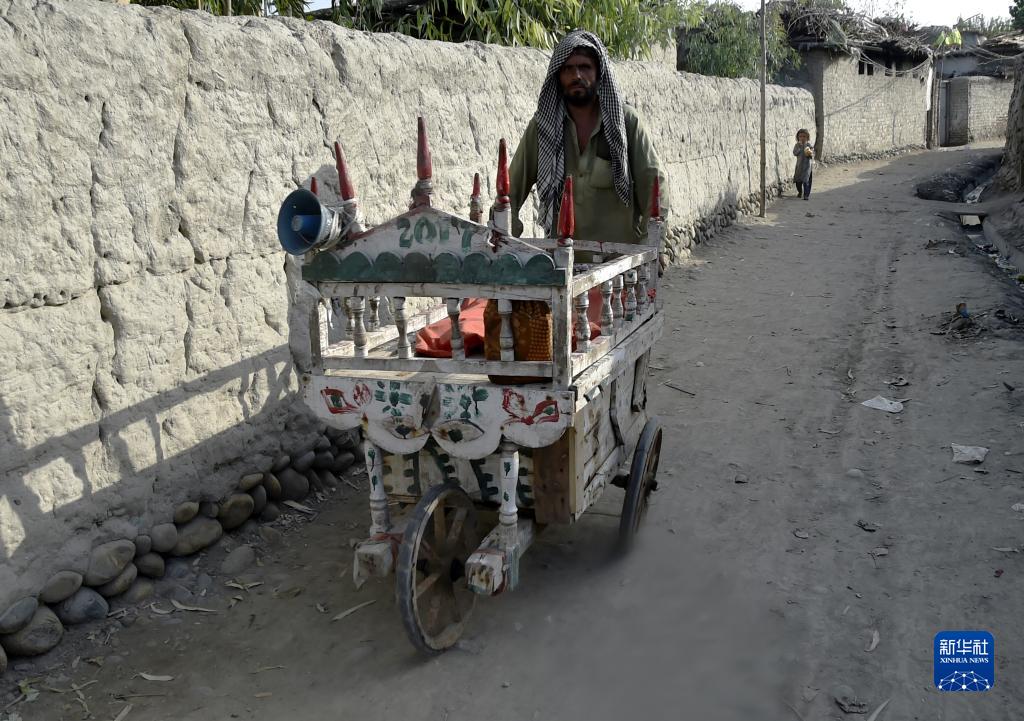 8月28日,一名男子在巴基斯坦白沙瓦的难民营卖冰淇淋。