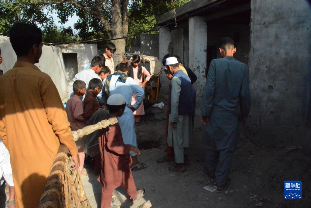 8月28日,人们聚集在阿富汗楠格哈尔省的空袭现场。