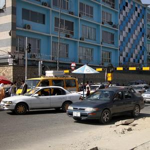 这是8月28日拍摄的阿富汗首都喀布尔街头的车辆。