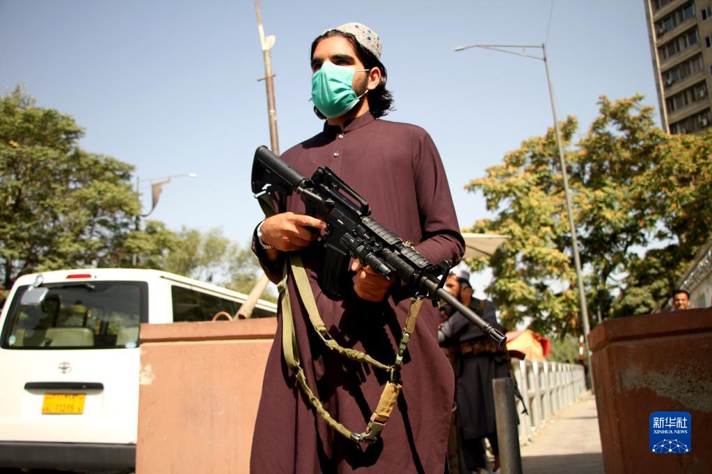 8月28日,一名阿富汗塔利班人员站在喀布尔街头。